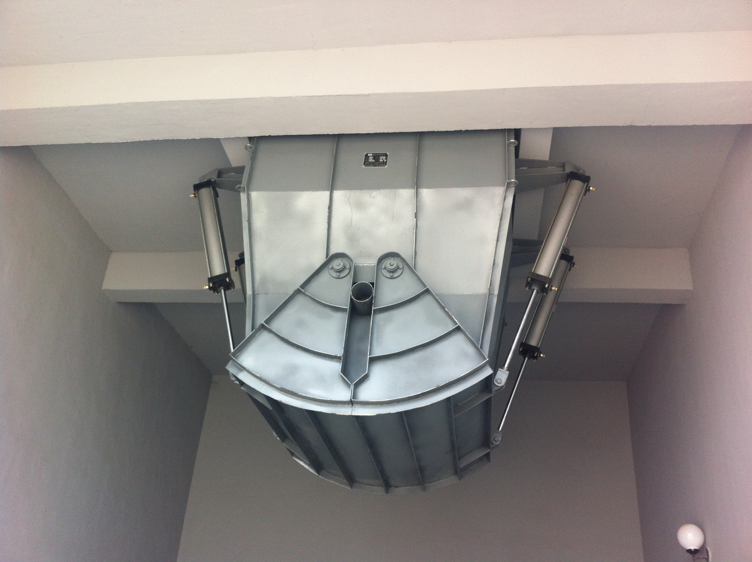 電動(dòng)泥斗,氣動(dòng)泥斗主要部件有儲(chǔ)泥斗、活動(dòng)門(mén)、電動(dòng)推桿和控制箱四大部分組成,該產(chǎn)品是一種往復(fù)運(yùn)動(dòng)的電力驅(qū)動(dòng)裝置。在斗體的下端為出料口,出料口的后側(cè)設(shè)有一鉸接座,出料口的下側(cè)設(shè)有托料板,托料板的上側(cè)中后部位置設(shè)有一耳板,該耳板與鉸接座鉸接連接;托料板后端上方與斗體之間設(shè)有排料油缸,托料板的下側(cè)中前部設(shè)有延伸板,延伸板的后側(cè)安裝有驅(qū)動(dòng)油缸。其結(jié)構(gòu)設(shè)計(jì)合理,使用方便快捷,通過(guò)控制托料板的傾斜狀態(tài)即可起到調(diào)節(jié)排料速度的目的,在排料過(guò)程中延伸板可沿托料板前后移動(dòng),進(jìn)而實(shí)現(xiàn)控制物料落點(diǎn)的目的。