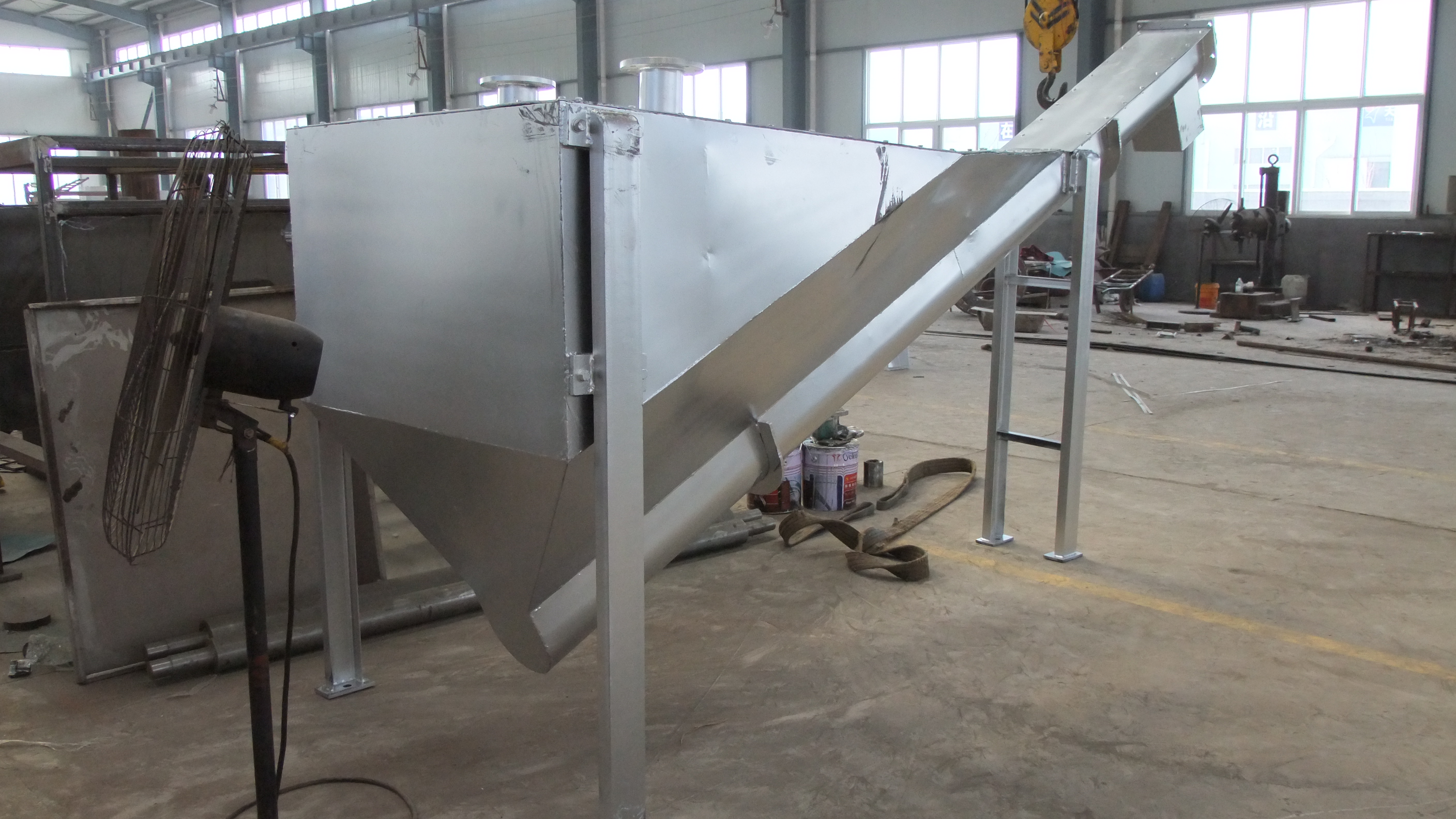 砂水混合物從分離器一端頂部輸入水箱,混合液中重度較大的,如砂粒等將沉積于槽型底部,在螺旋推動下,砂粒沿斜置的槽底提出升,離開液面后繼續(xù)推移一段距離,在砂粒充分脫水后經(jīng)排砂口卸至盛砂桶,而與砂水分離后的水從溢流口排出并送往廠內(nèi)進水池。